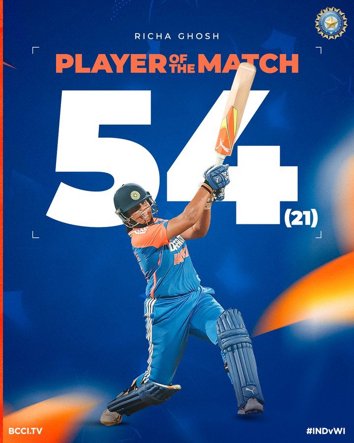 ടി20 പരമ്പര ഇന്ത്യൻ പെൺപുലികൾ തൂക്കി! അടിച്ചുകയറി സ്മൃതി മന്ദാന, മിന്നും താരമായി റിച്ചാ ഘോഷ്; തുടക്കത്തിലെ കാലിടറി വിൻഡീസ് സംഘം