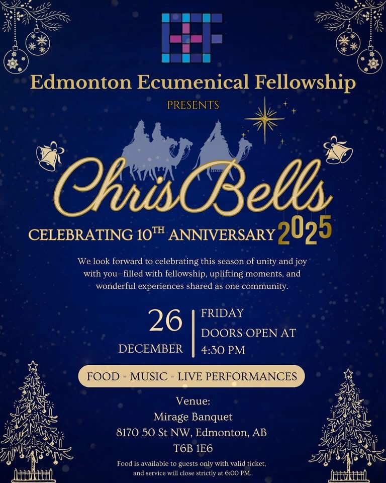 എഡ്മിന്റൻ എക്യുമെനിക്കൽ ഫെലോഷിപ്പ് ക്രിസ്മസ് ആഘോഷം ‘ക്രിസ്ബെൽസ് 2025’ 26-ന്